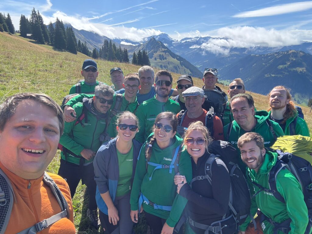 Nach einem ausgiebigen Frühstück am nächsten Morgen machten wir uns mit Sack und Pack auf zu Fuss das Tal hinauf bis nach Schönried. Von dort aus ging es mit dem Sessellift aufs Horneggli, wo es bereits Zeit war für einen ersten Apéro. Die Wanderung ging anschliessend ein Stück weiter, zum teil steil hinauf zum Restaurant Hornfluh – ihr ahnt es bereits – zum Mittagessen.